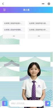 研究院参与研发的数智人产品已在清华大学附属中学总校(数智人“小清”)、北京第三实验小学(数智人“清小柔”)、合肥市屯溪路小学(数智人“小屯老师”)等多所学校投入使用。除助力日常教学与家校沟通外,招生季期间,这些数智人可实时解答家长及学生关于招生政策、报名流程、校园环境、课程设置等常见问题,减轻咨询接待压力,提高招生咨询效率,凭借全面且贴合需求的服务,获各校师生、家长高度认可。