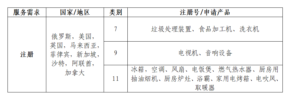 (一)项目名称:2025年海外商标注册服务