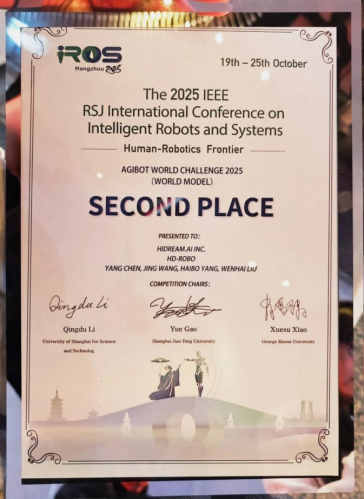 在全球顶尖机器人赛事AgiBot World Challenge @IROS 2025线上赛中,智象未来凭借视频生成与具身智能融合的创新方案,从全球431支参赛队伍中脱颖而出,荣获World Model赛道亚军,体现了公司在人工智能与机器人融合应用方面的技术优势。
