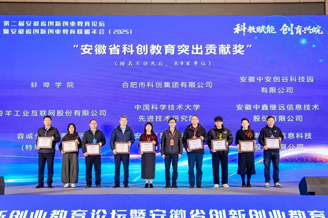 2025年12月20日,第二届安徽省创新创业教育论坛暨安徽省创新创业教育联盟(以下简称“联盟”)年会(2025)在合肥召开。合肥科创集团作为安徽省创新创业教育联盟副理事长单位,荣获“安徽省科创教育突出贡献奖”荣誉称号。