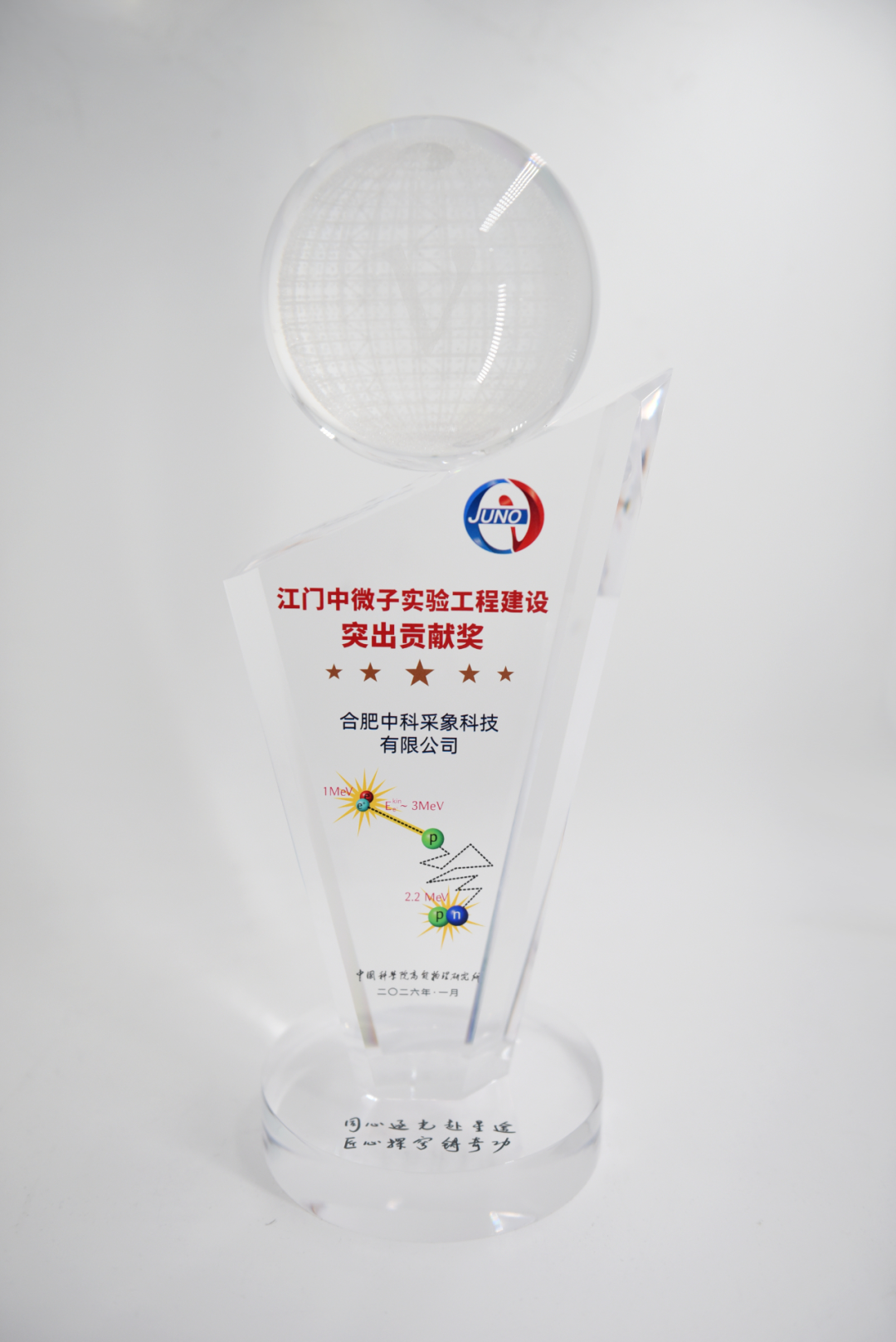 中科采象作为江门中微子实验(JUNO)核心建设单位,荣获“工程建设突出贡献奖”,体现其在大科学装置数据采集解决方案中的关键作用。